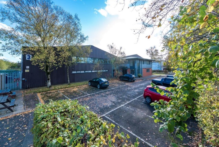 3-5 Paddock Road consists of a large industrial/warehouse building, featuring modern office space integrated into both the ground and first floors through later additions.